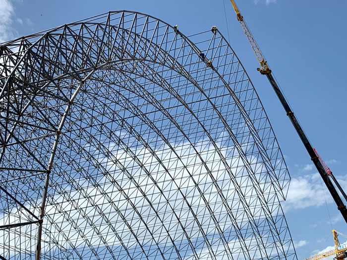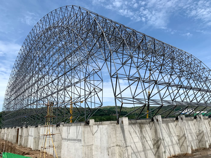 (2)网架加工前应对现场尺寸进行复测,确认无误后方可进行加工、安装;网架制作、运输、安装应遵守《空间网格结构技术规程》JGJ7-2010、《钢网架邹城螺栓球节点》JG/T 10-2009、《钢网架邹城螺栓球节点用高强度螺栓》 GB/T 16939-2016、《邹城钢结构邹城工程邹城施工规范》 GB50755-2012、《邹城钢结构邹城工程邹城施工质量验收标准》 GB50205-2020。